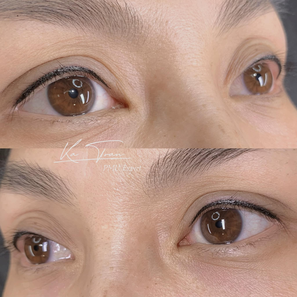 Follow the eyelash line with ombre effect tail stone. Helps eyes look deeper and more impressive.